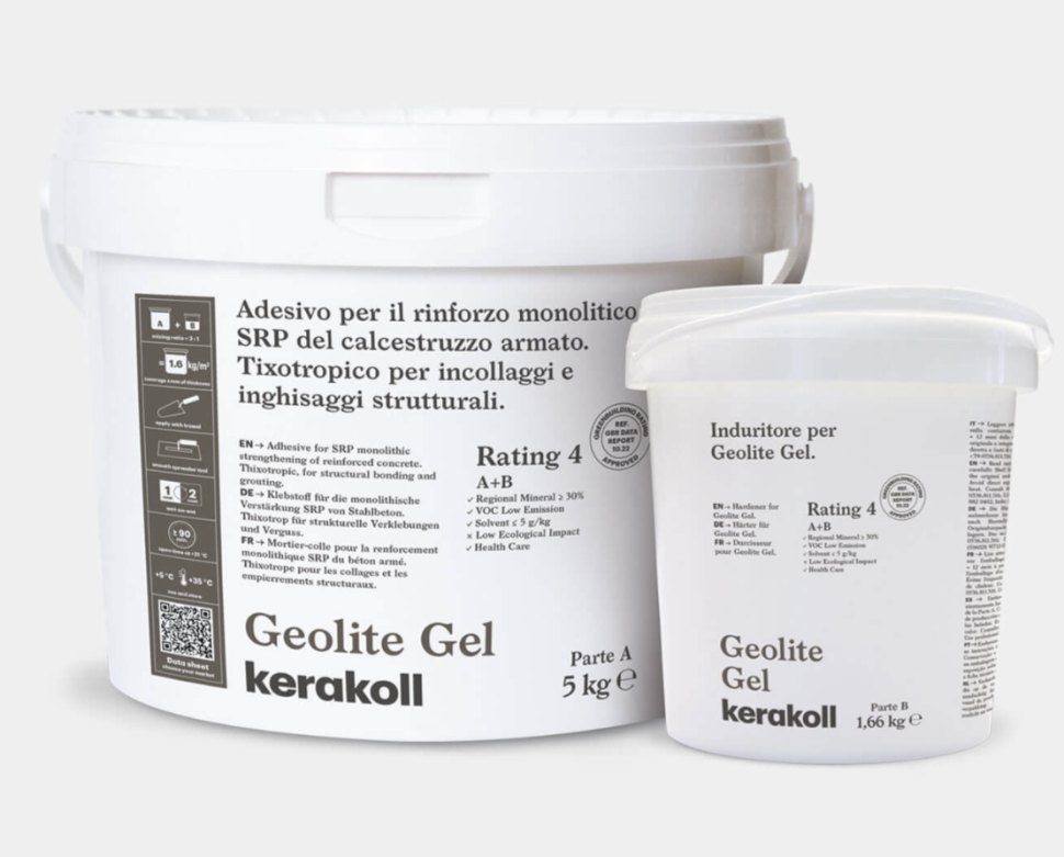 Упаковка Kerakoll Geolite Gel: часть А - ведерко 5 кг, часть В - ведерко 1,66 кг