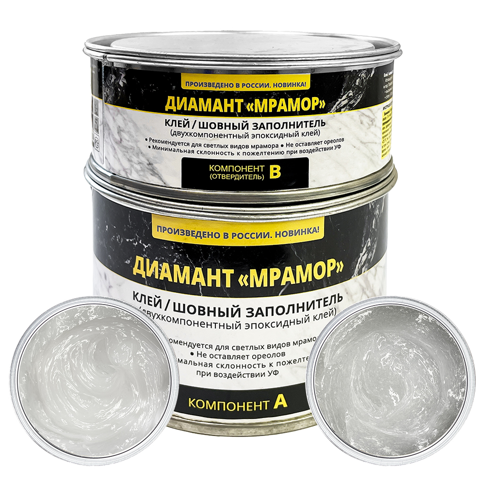 Клей ДИАМАНТ «МРАМОР» – двухпомпонентный эпоксидный клей/шовный заполнитель, предназначенный для склейки мрамора и подобных ему материалов. Клей обладает густой консистенцией, благодаря которой он подходит как для горизонтальных, так и для вертикальных работ. Образует прочное и эластичное соединение, устойчивое к повреждениям, перепадам температур и влажности.