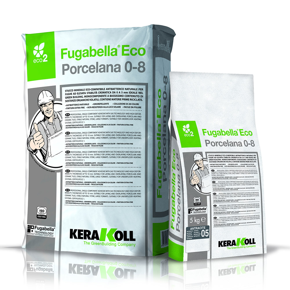 Официальный дилер KERAKOLL представляет влагостойкую затирку для мозаики, плитки и камня. Fugabella Eco Porcelana 0-8 обладает естественной антибактериальностью, влагостойкостью, микостатичностью, нормальным временем схватывания и быстрым затвердеванием.Цементная влагостойкая затирка Fugabella Eco Porcelana идеальна для швов шириной от 0 до 8 мм, поэтому как нельзя лучше подходит для мозаики. Однокомпонентная, с наименьшим выделением вредных химических веществ, она состоит из сырья, полученного в результате переработки.Fugabella® Eco Porcelana 0-8 обеспечивает идеально гладкую поверхность швов и обладает твёрдостью, соответственно, не царапается. Широкая цветовая гамма делает эту влагостойкую затирку идеальным дополнением к любому кафелю и натуральному камню.Благодаря влагостойкости Fugabella Eco Porcelana применяется для затирания швов плитки и мозаики в бассейнах, в том числе профессиональных.